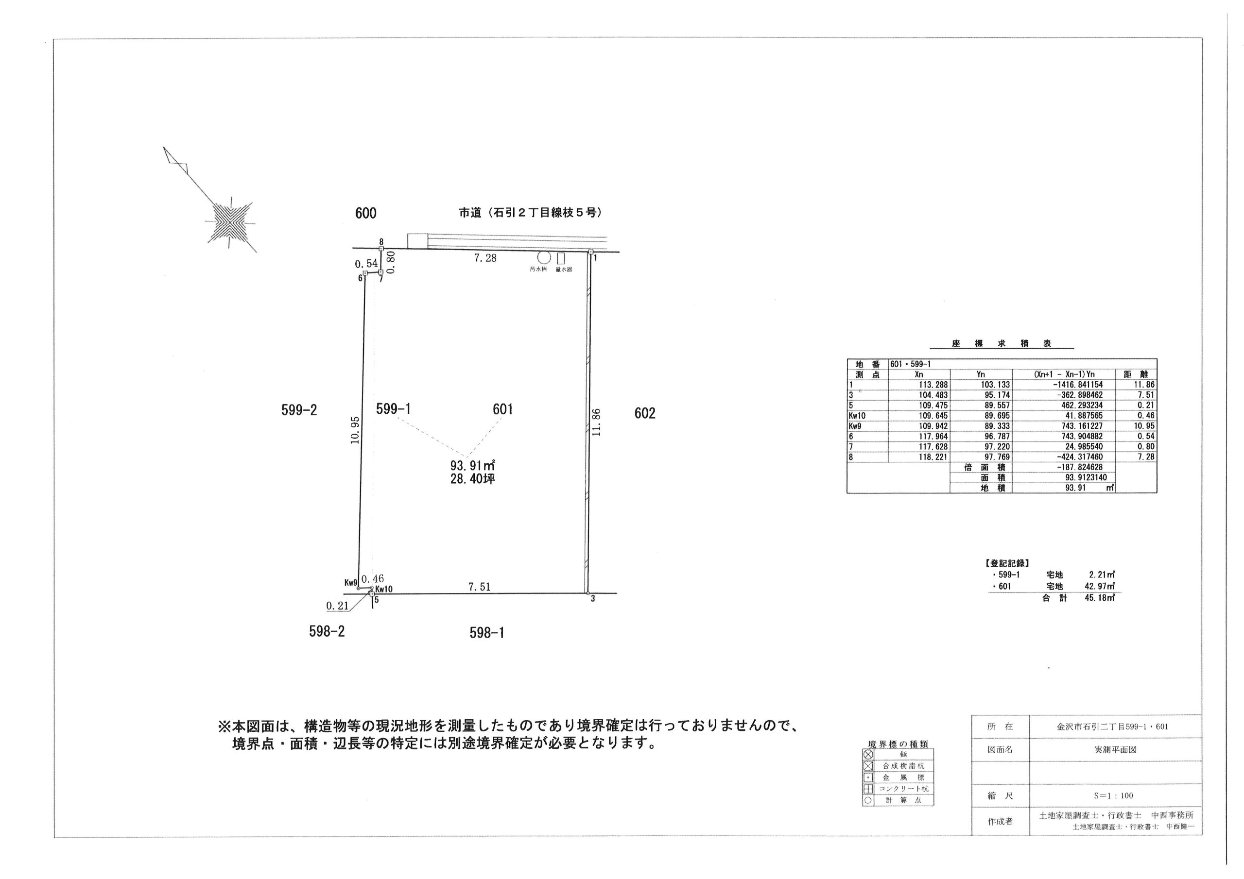 | 土地面積 | 実測:93.91㎡(28.40坪) | 地目 | 宅地 |
